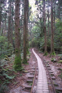 | そして、ここからはトロッコ道♪ 延々と続く8.5kmの道のりも 縄文杉に出会ってきた興奮と感動で 力強く?歩くことができたかなぁ〜 |