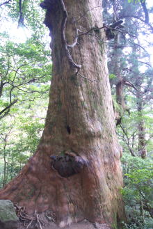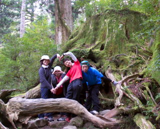 | 屋久島らしい巨大な杉に囲まれて マイナスイオンもいっぱい浴びてまーす! |