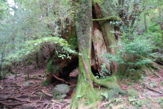 | こちらは今年の9月に倒れてしまった翁杉 ばったりと向こう側に倒れこんでいるのが わかるでしょうか? 2000年という長い歳月、お疲れ様でした! そして、この上にまた新たな命が芽生えるのです♪ |
