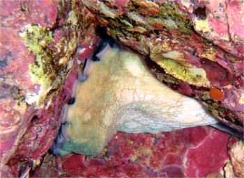 ご自分で見つけたタコ! 穴の中へにゅーっと隠れていきました! |