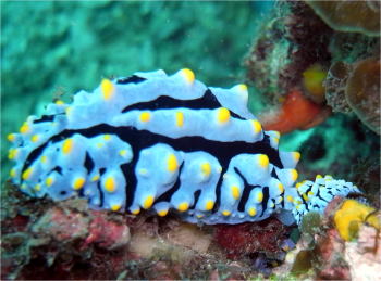 | タテヒダイボウミウシの大小のかなりサイズ違いなペア。 こちらもお忙しい最中でした! |