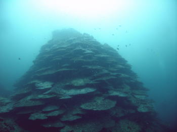 翌日曜日は、牟岐へ! 名物の千年サンゴは いま頂上が群れ群れです! 上から俯瞰して撮影してみました! |
