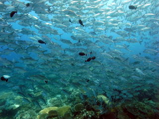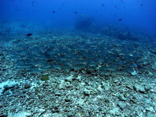 ![]() ブルーコーナーのコーナーで ギンガメアジも群れ群れ♪ |