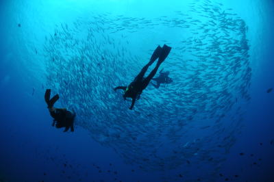 ギンガメアジの渦の中に突入〜っ!! 気持ちいい〜♪ 大興奮のダイビングの連続でしたね(^-^) |