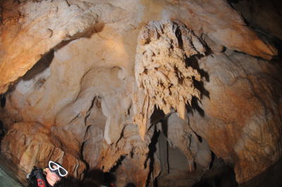 こちらはシャンデリアケーブのエアードームの中です。 まるでシャンデリアのような鍾乳石が 天井から垂れ下がって、今も成長を続けているんですよ♪ |