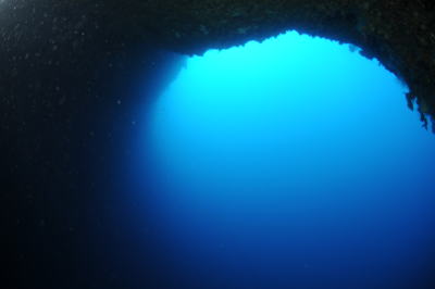 | シアストンネルの中から外を見ると こんな美しいブルーが見れました! |