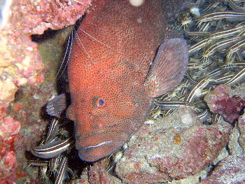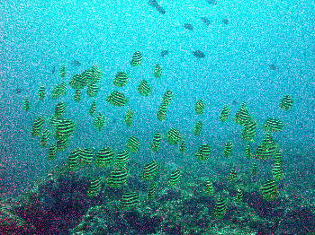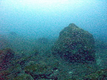 | ごちゃーっと岩の周りに クロホシイシモチだらけ! 濁ってるわけではありません! |