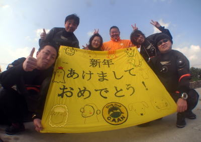 | 串本カウントダウンツアーへ行ってきました! 今年はとっても暖かくて、穏やかな海。快適なダイビングができましたよ〜! 大みそかには3ボートダイブ&カウントダウンナイト! もちろん透明度は抜群で、ふわふわと快適な水中のお散歩を楽しみました!季節限定ポイント アンドの鼻もオープンしていて、久しぶりの元祖アザハタの根も満喫!前にいたジョー君や、ハダカハオコゼも いました〜♪ グラスワールドはアイドル満載!かわいらしいクロハコフグや、レモンスズメダイの幼魚をゲット! ゲット率20%!と、冗談を言いつつ探しに行ったのですが、発見発見!幸先のいいダイビングになりました! たっぷり潜った後は少し休んで、ナイトに備えます。深夜11時過ぎから準備をして、いざエントリー! 夜なので暗いですがそれでもわかるくらい透明度抜群!わお〜 しかも、夜光虫のすごいこと!!!こんなにきれいなナイトダイブ、本当に興奮します! あらかじめ打ち合わせておいた場所に、各チームまとまって大集合! みんなが一か所に集まってくる様子は、光のシャワーが降り注いでくるようで、幻想的。。。 さあ!2011年も終わりです!カウントダウン!1分前!30秒前! おめでと〜〜〜〜〜〜! 今年は大明神が生身での登場です!(^O^) カウントダウンをしたら水中初詣!みんなで今年の幸せと安全ダイビングを祈願しておみくじも引き ました〜!どんなお言葉が書いてあったかな・・・・きっとご利益があるはずですよ(^_-)-☆ 上がってからはあっつあつのおそばを食べて・・・・おやすみなさい(^O^) 素敵な年越しダイブとなりました! 翌朝。お正月1本目のダイビング!今日も穏やかです! なぞのクシオネ?!が出た!という現地ガイドの情報、、、いったい誰なのか〜また次回のダイビングで 会えるかしら?私も見たかった〜〜〜 ダイビングの後は、お餅つき!石臼を使ってぺったんぺったん!今年もいろんな動物さんが お餅をつきにやってきてくれました!? みんなすこしづつ、協力して出来上がるお餅。初めてついた方、初めて丸めた方。 いい経験になったわ〜という声もありましたよ。 みんなでついたつきたてのお餅の味は、格別!あんこ、きなこ、ダイコンおろし、砂糖醤油などなど いっぱい食べてお腹いっぱい〜♪ これで今年のダイビングも、素敵なものになりますよ〜縁起良し!ですね。 カウントダウンにご参加いただきました皆様、ありがとうございました! 今年もどうぞよろしくお願いいたします! ますます皆様に喜んでいただけるように、頑張っていきますよ〜♪ ![]() |