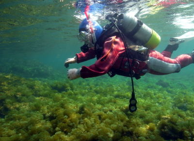 初めての体験ダイビングのAさん! フクロノリの大草原を颯爽と泳いでいます♪♪ んん〜〜お見事! 初めてとは思えない潜りっぷりですo(^o^)o |