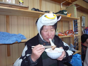 | ダイビング後は、お餅つき! なんだか動物がいっぱいの餅つきです。 |