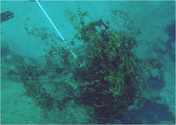 | アオリイカはこんなところにも卵を産んでいましたよ。 孵化までもう少しありそうです。 |