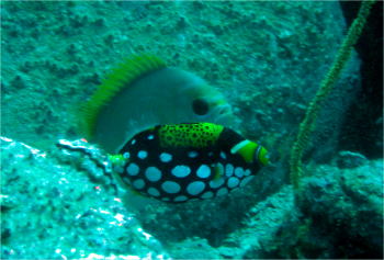 仲良しさん??? モンガラカワハギが元気に泳ぎまわっていました! |
