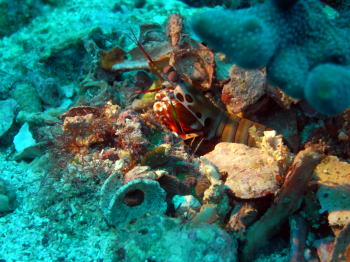 | 『なんじゃい!じゃまするんかい!』 とファイティングポーズの モンハナシャコ よい子の皆様は、絶対に手を出さないでくださいね。 |