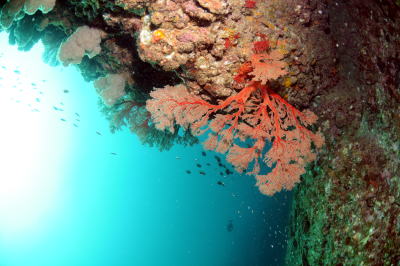 こちらなんて、まるで沖縄?!と思うような 青い海、さしこむ光、ソフトコーラルの コラボレーションが素晴らしいです♪ |