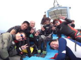 | 梅雨明け直後の柏島へ行って来ました!真っ青な空がとっても印象的なツアーでしたよ〜♪ 全員ウエットスーツで、夏を感じました!今回は京都からのご参戦、Tさんもご一緒でした〜! さて1本目!後浜6番でゆっくりハゼ探し・・・と思ったら!!! なんと砂地の上に大きなカンパチがワサワサ〜ビューン!キビナゴが逃げ惑う、アオヤガラ追いかける のダイナミックな1本となりました!安全停止では可愛らしいマツバギンポやハダカコケギンポが 見つかりましたよ。 そして2本目は新しいポイントのレッドロック。深場へと降りると、スミレナガハナダイや、スジハナダイが! きれ〜い♪写真写真とおもったら、あまりの気温水温差にカメラが曇ってる〜〜〜残念無念。 初日ラストは後浜1番。柏島ならではのキツネメネジリンボウや、ネジリンボウなどなど砂地アイドルに ご挨拶できました♪ あっという間にダイビングが終わり、お買い物タイム♪高知と言えばこれでしょう、と言う栗焼酎をゲット! お土産も完璧に手に入れました! 翌日。今日もいいお天気です!まずは民家下北へ! いきなり、わっ!シイラやん〜〜〜あれ!でも、いきなりすぎて早すぎて、誰の目にも止まらずでした。 残念だ〜ぁ。 でもまっきいろのゴールデンイールモレイが久々に顔を出してくれていました。 ゴールド?黄色?まあ、まあ。。。とにかく可愛らしいし許してね(^_-)-☆ そして深場へ行くとアケボノハゼが、、、、もう引っ込んでしまっていました。これまた残念〜 仕方が無いので、大きくて立派なハタタテハゼのペアをご紹介。これで許してね?! ご参加のTさんは、カエルアンコウを見つけた〜って、後で教えてくれましたよ。 そしてラストは、後浜3番。マッタリ斜面を降りていくと、そこにはぽっこりと開いた穴がみつかります。 そーっと除くと、いました!ムラサキのボディがお洒落なバイオレットボクサーシュリンプ。メスはお腹に たっぷりと卵をつけていました! そして、砂地から突き出た大きなウチワには赤いクダゴンベが2匹。とっても綺麗です。 最後は皆で記念撮影をしてエキジットとなりました! 素敵な海と、美味しいご飯と、そして高速道路も少し延びてアクセスがだんだん快適になってきた 柏島です! ご参加の皆様、ありがとうございました! |
