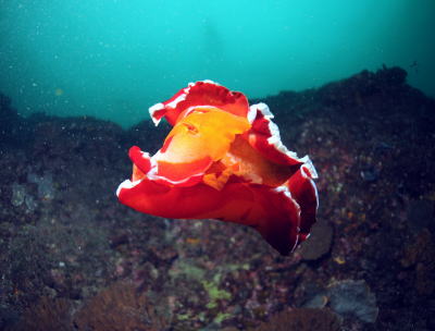 | 最後はワイドレンズでも捕らえやすいサイズ! BIGなミカドウミウシ〜〜(^-^) もちろんダンスもご披露いただきました! とりを飾るのにふさわしいウミウシですっ。 |