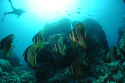 ツバメウオの群れにも遭遇!! 皆さんの口からついて出てきた言葉は 『ここは沖縄か?!』(笑) |