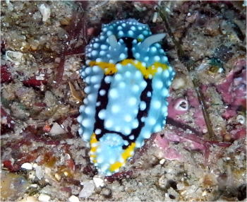 最近注目度UPのシンデレラウミウシ なんでこんなに綺麗なんでしょ。 シンデレラとはよく命名されているものです。 |