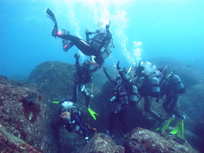 疑惑の?胴上げ!!! 高々と上がったのですが ダイビング後にOさんの一言は衝撃でした! 『胴上げしました?』 そう、おひとりだけ、カメラのほうを向き続けている方が。。。 |