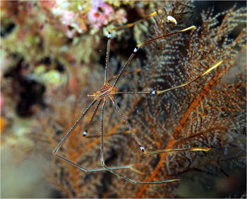 こちらはちいさ〜なイボイソバナガニ。 サイズ的には上のムチカラマツエビと同じくらいですけどね。 小さい個体です。 |
