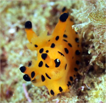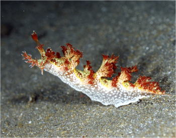 ミドリリュウグウウミウシは やたらたくさん?!いましたよ。 沈船で一番たくさん見たウミウシです。 まるで粘土細工みたいですよね。 |