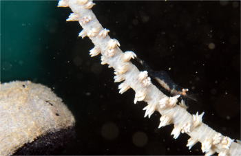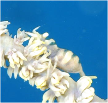 | ココからは甲殻類特集! こちらブリッと大きな(これでも大きいんです) ムチカラマツエビ。 |