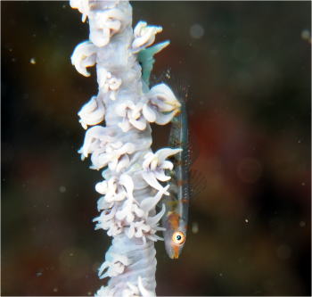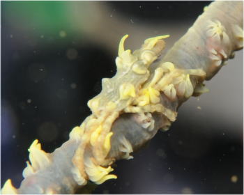| さて、今回マクロで通されたSさん。 水中で綺麗に目だっていました! 決して、オオカワリギンチャクの子供とかでは ありませんよ〜(^○^) |