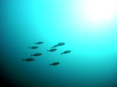 | 透明度も回復した日曜の朝 備前では、カンパチの群れも登場〜っ! メジナの群れや アザハタの根の群れも大きくて ワイドなダイビングも楽しむことができました! |