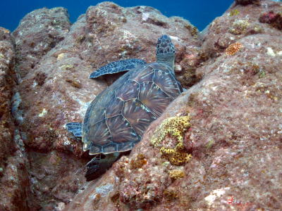 めちゃくちゃ浅い岩の上には アオウミガメさんがちょこーんと 休憩中でした(^-^) |
