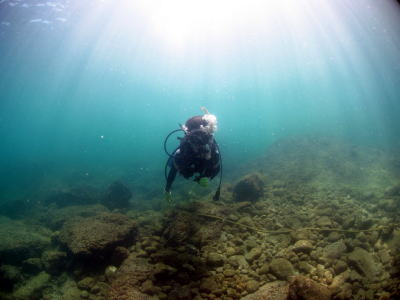| 太陽の光が降り注ぐビーチで講習。 キレイです(*^。^*) OW講習2回目にしてこの中性浮力!! とてもお上手です! |