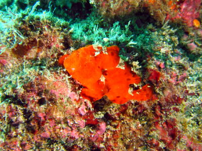 何かいないかな〜?とのぞいたタイヤには、 可愛いオレンジ色のイロカエルアンコウちゃんが 住んでいましたよ! 講習で見れてしまうなんて、ラッキーです★ |