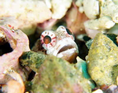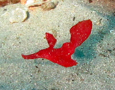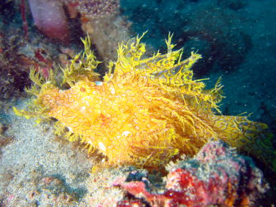 | 土曜日潜った大島のビーチでは 超レアなボロカサゴ様にもご対面! 1000本以上潜っているKさんも こんな色は初めて見たわ〜、と 驚かれていました! |
