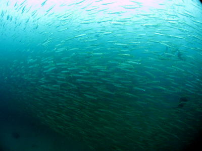 大繁殖中?!のカマスの大群が ふと見上げると上空に〜! 大迫力でした! |