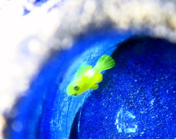 幻想的な青いビンのなかには 愛らしいミジンベニハゼちゃんもいました〜! ほかにもビンをのぞくと続々とミジンちゃんがっ どうなってるんでしょう?! |