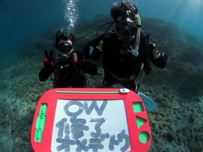 この週末にダイバーになられる方もいらっしゃいました! ビーチも透明度20mで 水面は波がありましたが とってもきれいな水中を満喫できました! |