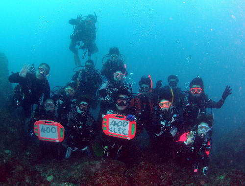 | 金曜から一足早く串本入りされていたO様 前々からの計画通り 年内に見事400本記念を迎えられました! 今年は潜りに潜った1年でしたね(*^。^*) おめでとうございまーす!! |