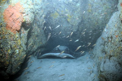 さて、ダイビングはというと まずはのっけから〜 巨大マダラエイさんの登場です〜♪ なんと、残念ながら見逃した方も・・・ 来年こそは必ずやっ!! |