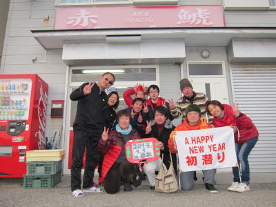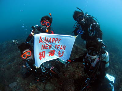 | 毎年恒例の串本カウントダウンツアーへ行ってきました〜! 毎年この時期は荒れることが多いので、ドキドキでしたが、無事に水中でのカウントダウンも出来ましたよ〜(*^。^*)というわけで、きっと今年は素敵な一年になるはずです!! まずは、30日の夜に出発!この日は、こちらも恒例になりつつあるS様のお誕生日!ということで、到着後に皆でケーキでお祝いしました〜っ(^○^) S様おめでとうございます!新しい年も楽しく潜って、素敵な写真を撮影してくださいね〜(^-^) 31日 少し風が強く、水面は波のある状態でしたが、水中は穏やかでした〜(*^。^*) まずは備前にエントリー♪マクロレンズのK様はハゼ狙いでしたが、残念ながらハゼさん、でていませんでした。でも、アザハタの根のお魚は多いし、可愛いジョーくんに、かわいいウミウシなど、色々楽しめました! 2本目はK様リクエスト そして、皆が大好きなグラスワールドです!ホタテツノハゼさんは残念ながら引っ込んでいましたが、代わりに移動中、カスザメを発見v(^-^)v砂に上手に隠れていましたが、私の目はごまかせませんよ〜(^_-)冬の風物詩、今期初の出会いでした!北の根では、偶然 アオウミガメさんがゆーっくりと私達の目の前を泳いでいきました!年の瀬の挨拶にきてくれたのかな〜♪アンカー下のフリソデエビやジョーフィッシュ、マツカサウオの赤ちゃんなどアイドル達も皆元気に年を越しますよ〜(^○^) 3本目は、イスズミ礁で水中散歩〜\(^o^)/ちっちゃなウミウシも増えてきました!シンデレラウミウシの赤ちゃんも見つかりましたよ!まったり、のーんびりときれいな砂地で癒されて、2012年最後のエキジットとなりました! カウントダウンナイトはあるのですが、時間もあるし、ということで、まずは皆で温泉へ!そして、夕食は水炊きでした!美味しいお鍋もたらふくたべて、最後はもちろん雑炊までいきましたよ!お腹いっぱになったら、ちょっと仮眠タイム♪ゲストの皆様、爆睡だったようです(^-^) そして、そのときがやってきました〜!!いよいよ水中カウントダウンナイトに出発です!23時30頃エントリーをして、いざカウントダウンをするナマコ広場へ!遅れるといけないので、15分前くらいには到着して、安心安心!動き回って遅れてもいけないし・・・としばし待機!そして、きました、カウントダウンの鐘の音が鳴り響き〜「あけましておめでとうございます〜」2013年の幕開けです!S様はお祝いの笛まで吹き鳴らしてくださいました!新年を迎えたら、もちろん水中初詣!順番待ちの間には、でっかいタコに爆睡中のブダイ、そして、可愛いミミイカさんにも会えました!深夜のナイトはこの日だけの特権なので、まだしたことなーい、という方は、ぜひ次回のカウントダウンにご参加くださいね〜っ!さぁ、順番がきて、赤鯱神社に初詣でです!大明神様じきじきにお守りもいただきました! さぁまだまだ夜は長い!まずは年越えたソバをいただき、皆でカンパイ\(^o^)/ワイワイトークして、2時ごろ眠りにつきました。 翌朝、7時過ぎ、雲もあまりなく、きれいな初日の出が潮岬の向こう側にのぼりましたよ!今年の幸運を示すようなお天気と海の穏やかさになりました! そして、いざ初ボート〜!!気持ちのいい青空の中、まずはグラスワールドへ!浅場のカメ狙いでしたが、いつものところには不在。会えないかな〜?と思っていたら、全然違うところで会えちゃいました〜!しかも2匹も〜!!これは、なかなか素敵な2013年の始まりですよっ!マクロレンズのお二人は、フリソデエビにマツカサウオの赤ちゃんに、きれいなオトヒメエビのお子様に、ジョーフィッシュと盛りだくさん!ジョーをみている最中にKくんが何気なく指を刺して教えてくれます。なになに?と思ったら、もう1匹ジョーくんが近くに住んでいました!Kくん視力2.0だそうです!さすが(^_-) と、ワイワイ賑やかなアイドルに新年のご挨拶をして、エキジットしました! 2本目は、備前にハゼリベンジに行きましたが、残念ながら今日もお休み〜だったので、アザハタの根とアンカー近くの根でまったり!アンカーの近くの根では、クラカトアちゃんやちっちゃすぎて判定不能なシロウサギウミウシちっくなウミウシに、Kくんは、なんとシンデレラウミウシいましたよ、って「教えてよ〜」と絶叫(>_<) 今度は教えてくれるはずです!宜しくお願いします! さて、ダイビングが終わったら、今度は新春恒例のお餅つき大会です!今年も十二支達が集まり、美味しいお餅をついてくれました!皆でぺったんぺったんついたお餅は、格別ですね\(^o^)/きな粉に砂糖醤油に大根おろしにあんこに、とそれぞれお好み味を楽しんでワイワイ楽しくなりました!皆様、有難うございました〜!! 2013年を楽しく迎えることができました!カウントダウンツアーにご参加いただきました皆様、ありがとうございました!そして、ご参加できなかった皆様も、昨年は大変お世話になり、有難うございました! 皆様に、さらに楽しんでいただけるよう、STAFF一同、