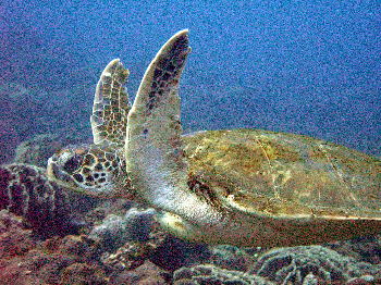 | アオウミガメに大接近! ぶつかっちゃいそうです! |