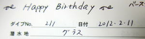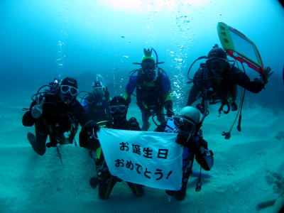 | 今回お誕生日を迎えられたHさん 素敵な海で 素敵なお誕生日になりましたね! おめでとうございます! 今年もバンバン潜りましょーo(^o^)o |