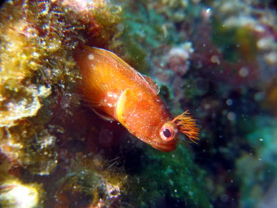 | オレンジ色のコケギンポさん なにかを探していたのか ニューッとでてきていました! |
