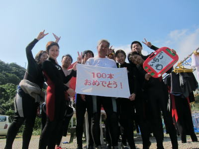 そして、午後からはOさんの100本記念! 10年越しの100本ですが 海の中でプカプカするのが大好きなOさん これからも、地道に潜り続けてくださいね〜っ!! |