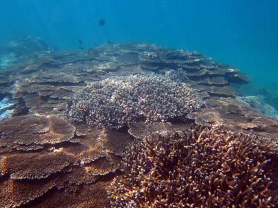 | 最後は中性浮力の練習もかねて サンゴの上へ〜〜♪ キラキラのサンゴの群生 キレイでしたね〜(*^。^*) 皆さんもどんどん上手になってきました! |
