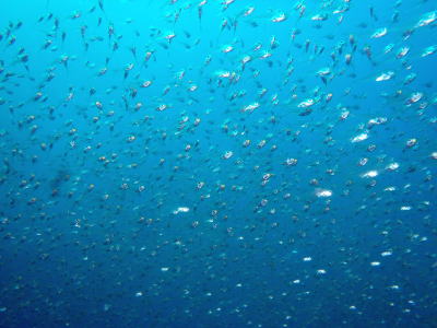 | ファンダイブチームは 2日間 ボートダイビングを満喫(*^。^*) 塔の沖では、むれっむれのキンメモドキでーす! |