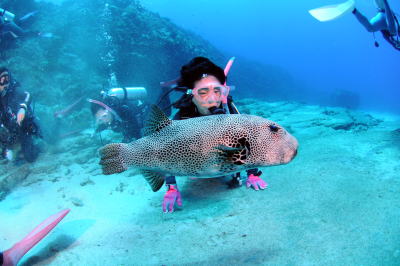 天馬崎では、巨大なモヨウフグが休憩していました! |