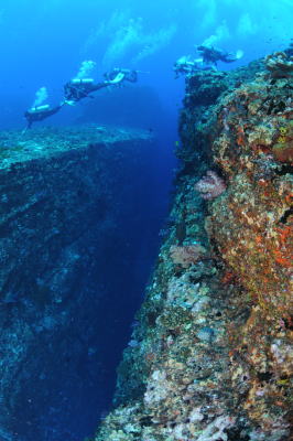 | 今年も行っちゃいました! 仲の神島 東の根〜!!! ダイナミックな地形を全身でたいかーん\(^o^)/ まるで高層ビル街を飛んでいくようです♪ |