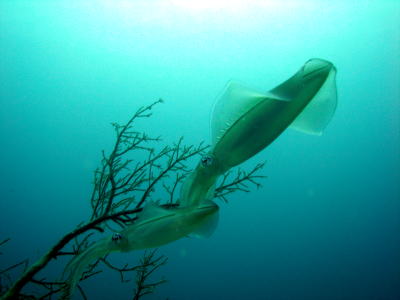 アオリイカのオス達が メスのイカを奪い合う姿も なかなか圧巻ですよ!! |