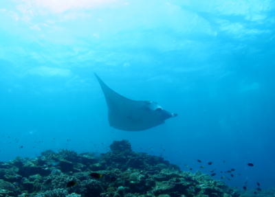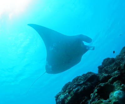 ゆったりと 空をはばたく鳥のように飛んでいくマンタちゃん♪ もう皆様、マンタの魅力にメロメロですぅ(*^。^*) |
