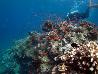 | まずは到着後、2ダイブ! のんびりとチェックダイブもかねて 浅場のポイントできれいなサンゴに お魚いっぱいの景色を堪能しました〜♪ |