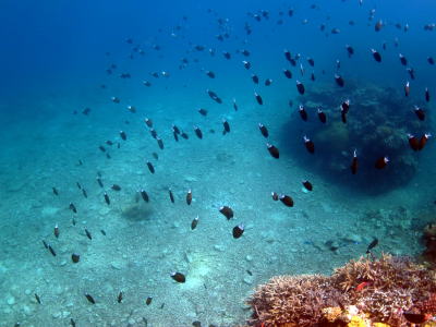 アマミスズメダイも群れ群れで まるで空から降ってくるようです(*^_^*) |